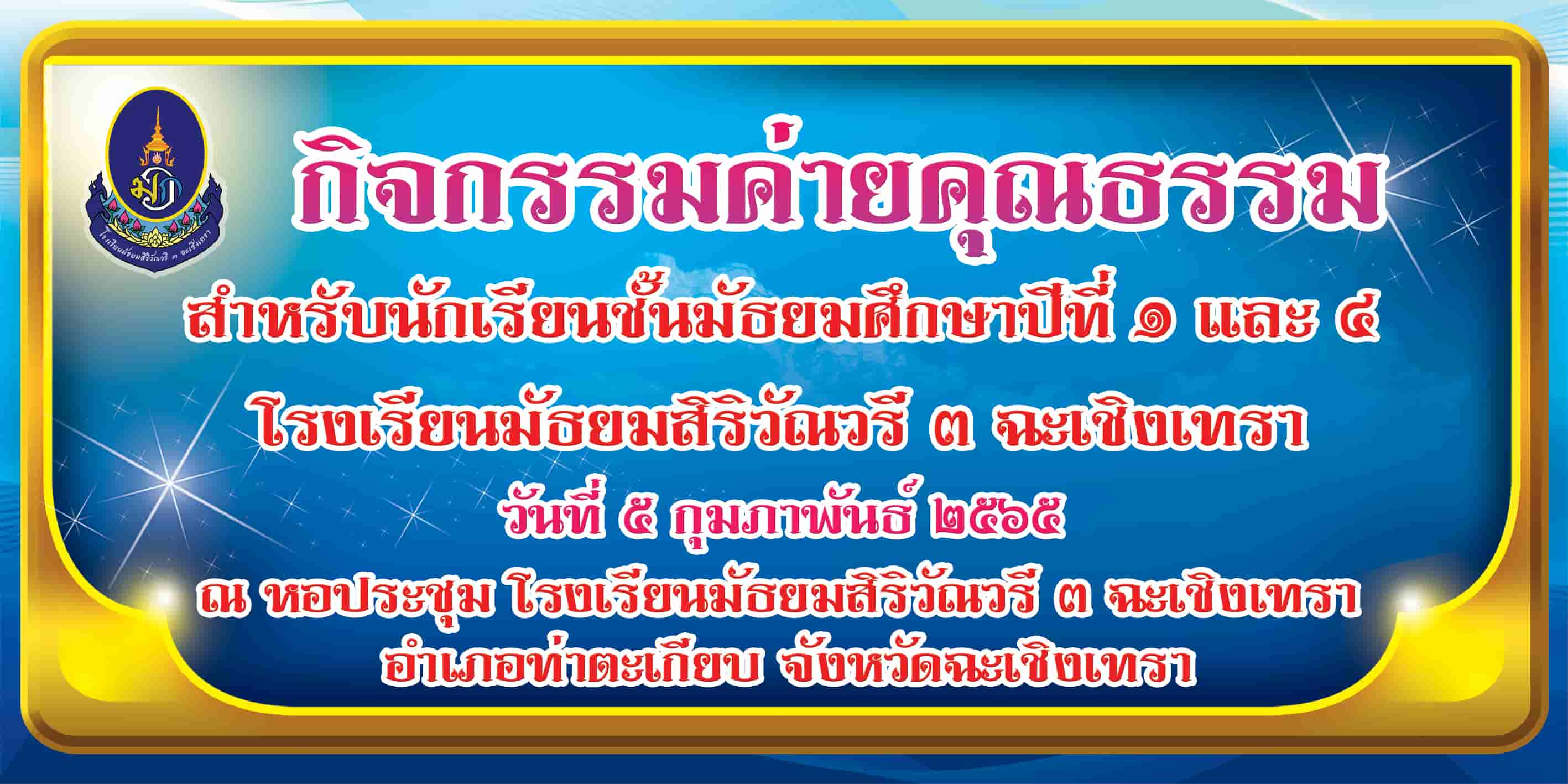 โดยมีนางสาวรุจินันท์ ทิพยรัตน์ รองผู้อำนวยการโรงเรียนมัธยมสิริวัณวรี ๓ ฉะเชิงเทรา เป็นประธานในกิจกรรม