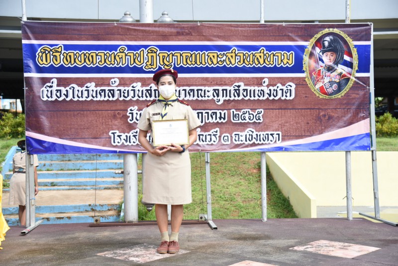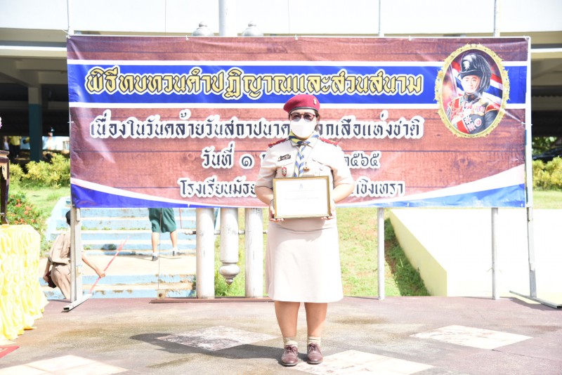พิธีทบทวนคำปฏิญาณและสวนสนาม เนื่องในวันคล้ายวันสถาปนาคณะลูกเสือแห่งชาติ ประจำปีการศึกษา 2565