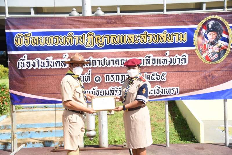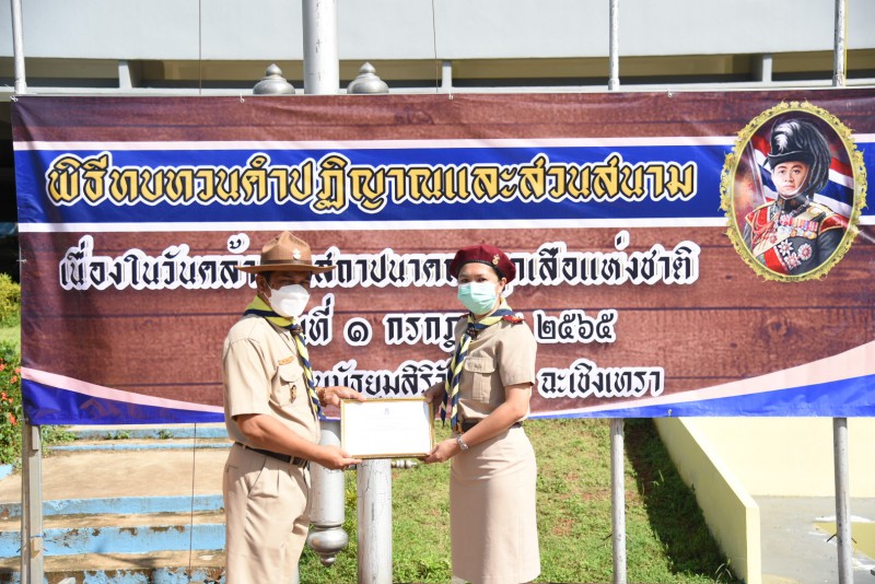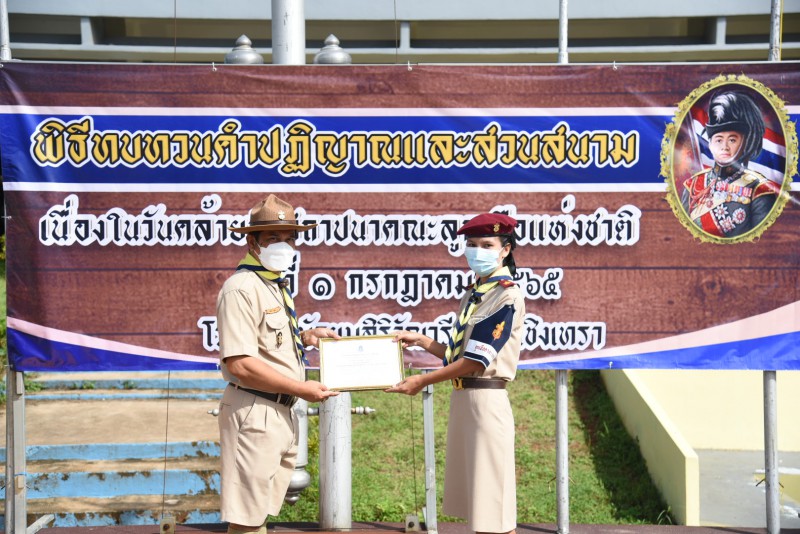 พิธีทบทวนคำปฏิญาณและสวนสนาม เนื่องในวันคล้ายวันสถาปนาคณะลูกเสือแห่งชาติ ประจำปีการศึกษา 2565