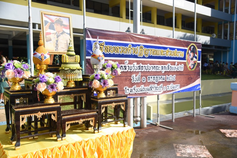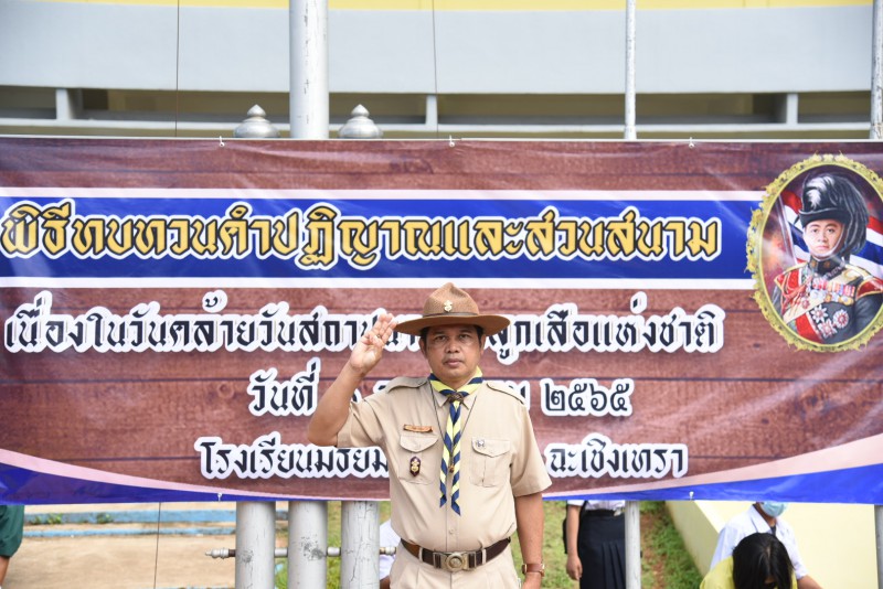 พิธีทบทวนคำปฏิญาณและสวนสนาม เนื่องในวันคล้ายวันสถาปนาคณะลูกเสือแห่งชาติ ประจำปีการศึกษา 2565