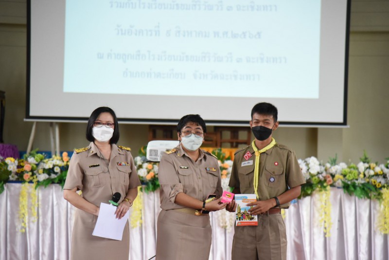 โรงเรียนมัธยมสิริวัณวรี ๓ ฉะเชิงเทราร่วมกับสำนักงานคณะกรรมการการเลือกตั้งจังหวัดฉะเชิงเทรา จัดกิจกรรมฝึกอบรมลูกเสืออาสา กกต. เพื่อพัฒนาประชาธิปไตย ในวันที่ 9 สิงหาคม 2565 โดยมีนายสัมฤทธิ์ วงศ์วิราช รองผู้อำนวยการสำนักงานคณะกรรมการการเลือกตั้งจังหวัดฉะเชิงเทรา เป็นประธานเปิดพิธีการอบรม ได้รับเกียรติจากวิทยากรใน สำนักงานคณะกรรมการการเลือกตั้งจังหวัดฉะเชิงเทราเป็นผู้ให้ความรู้กับลูกเสือ-เนตรนารี |