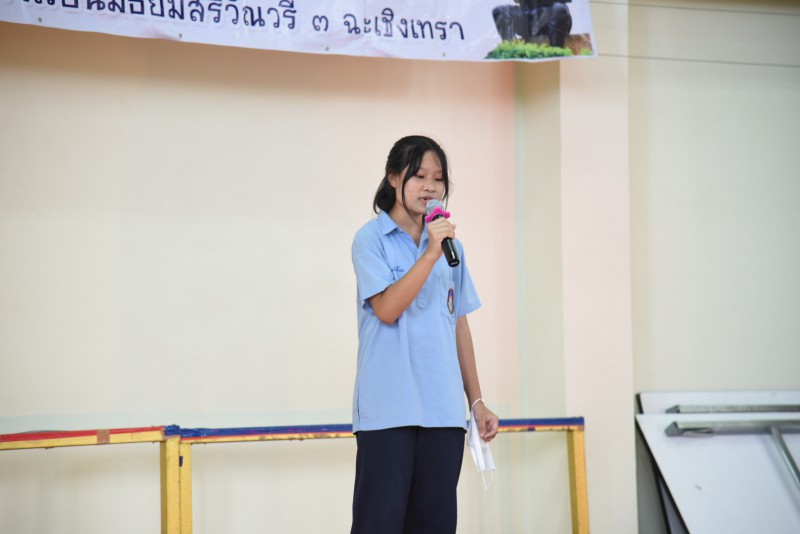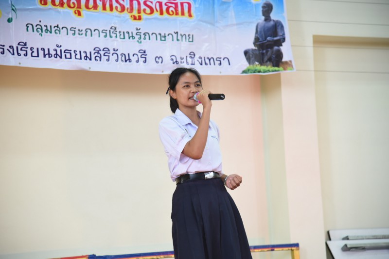 วันที่ 26 มิถุนายน 2566 กลุ่มสาระการเรียนรู้ภาษาไทย โรงเรียนมัธยมสิริวัณวรี ๓ ฉะเชิงเทรา ได้จัดกิจกรรม น้อมรำลึกกวีเอกของไทย วันสุนทรภู่ ประจำปีการศึกษา 2566 จัดพิธีบวงสรวงดวงวิญญาณสุนทรภู่ โดยมีนายโกศล วรพุฒ เป็นประธานในพิธี คณะผู้บริหาร ครู และนักเรียนเข้าร่วมงานบวงสรวงในครั้งนี้ และมีการแข่งขันกิจกรรมดังนี้
