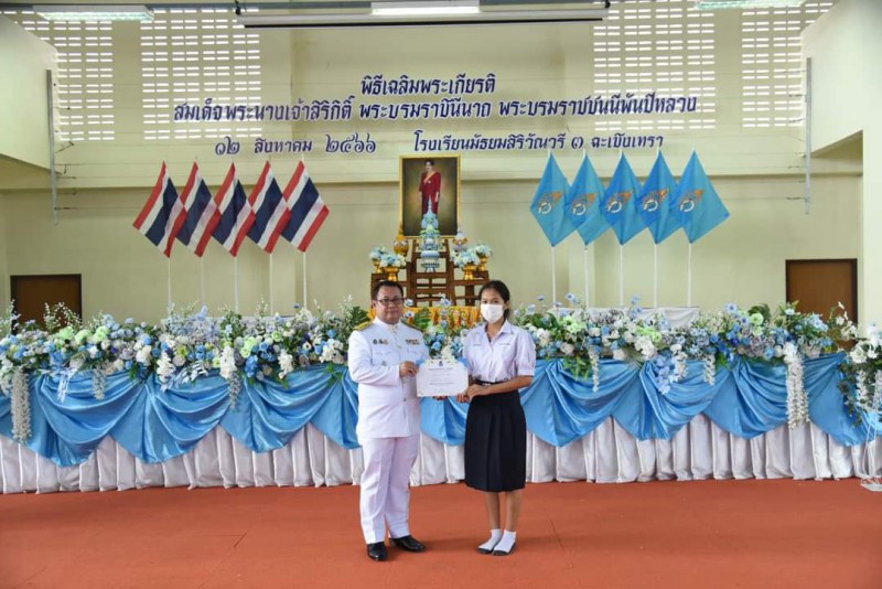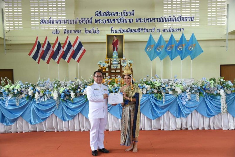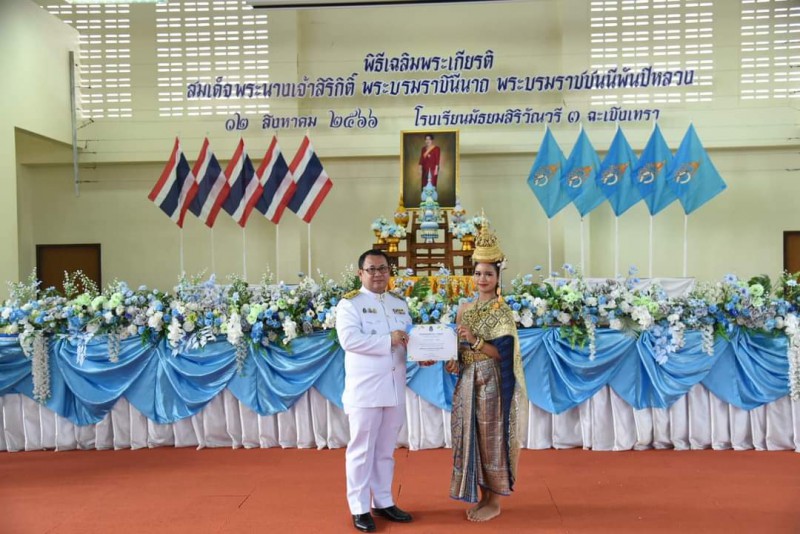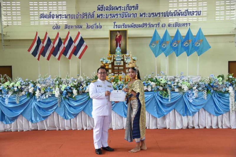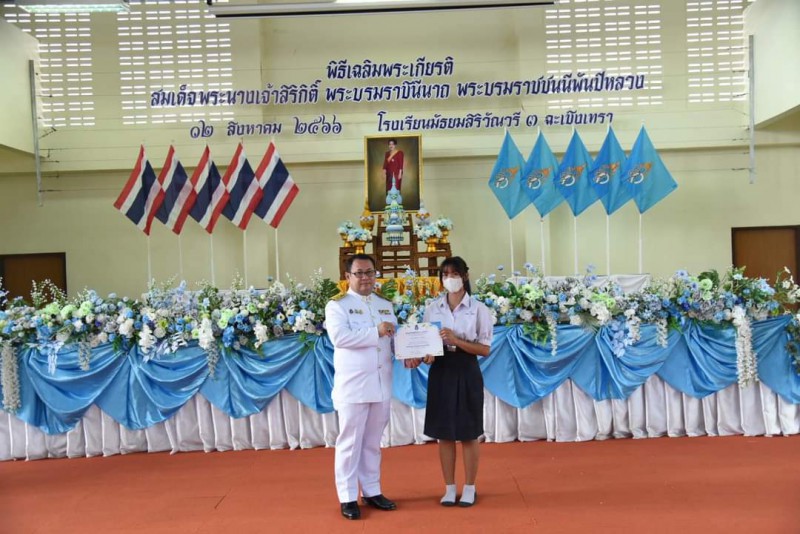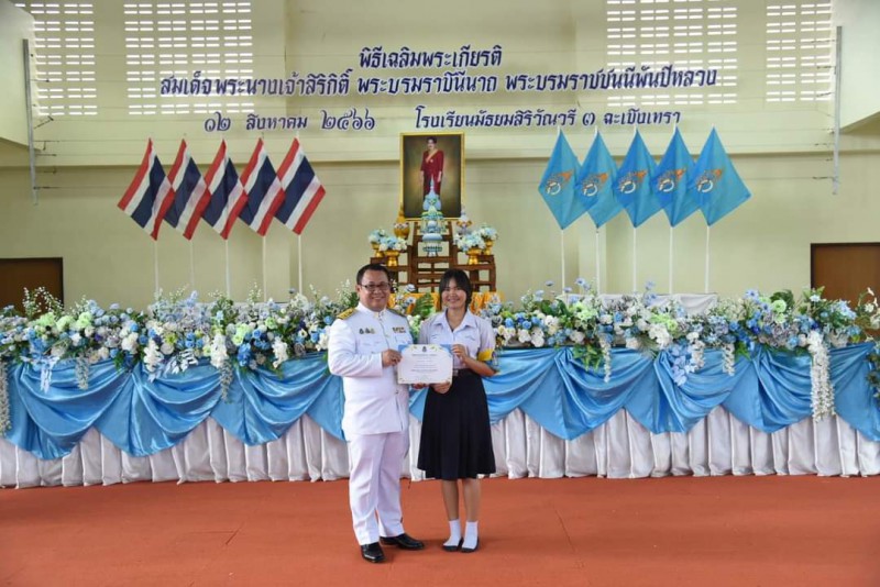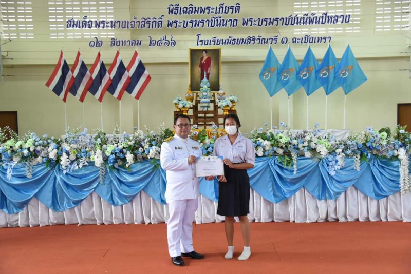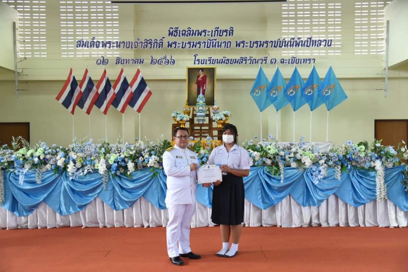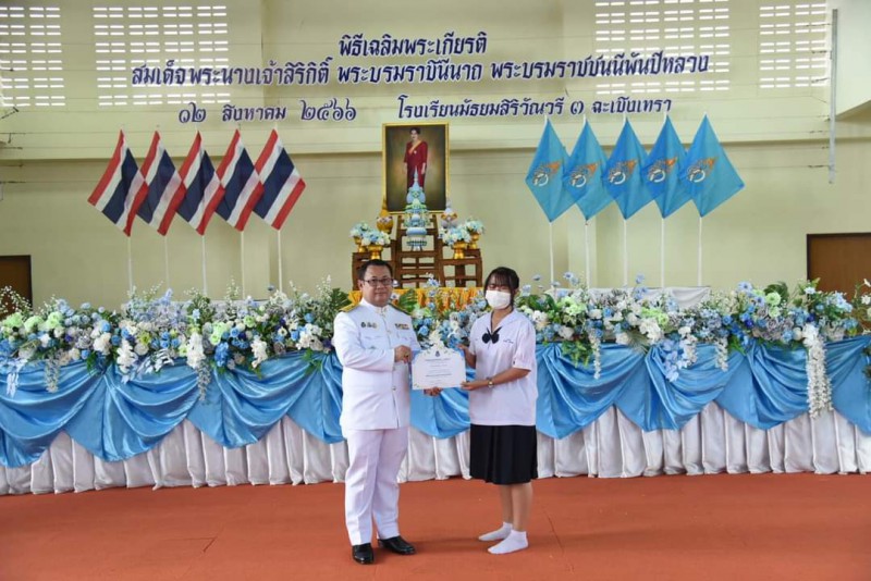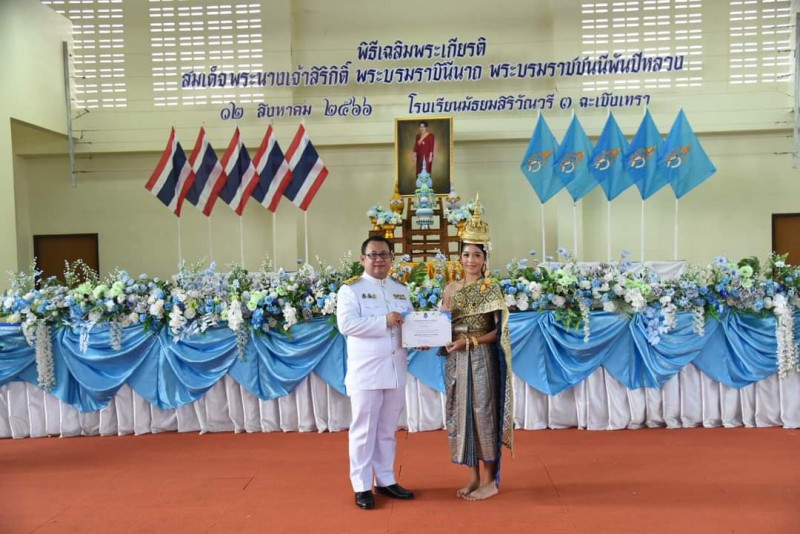 วันที่ 11 สิงหาคม 2566 โรงเรียนมัธยมสิริวัณวรี ๓ ฉะเชิงเทรา จัดพิธีเฉลิมพระเกียรติสมเด็จพระนางเจ้าสิริกิติ์ พระบรมราชินีนาถ พระบรมราชชนนีพันปีหลวง ในโอกาสวันเฉลิมพระชนมพรรษา 91 พรรษา วันที่ 12 สิงหาคม 2566 โดยมีว่าที่ร้อยตรีฐปนนท ยิ่งชนะ ผู้อำนวยการโรงเรียนเป็นประธานในพิธี และมีการทำบุญตักบาตร เพื่อถวายเป็นพระราชกุศลเนื่องในวันเฉลิมพระชนมพรรษา มีคณะผู้บริหาร คณะครู บุคลากรทางการศึกษา และนักเรียนเข้าร่วมพิธีในครั้งนี้ด้วย |