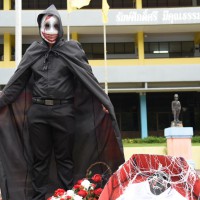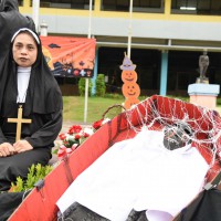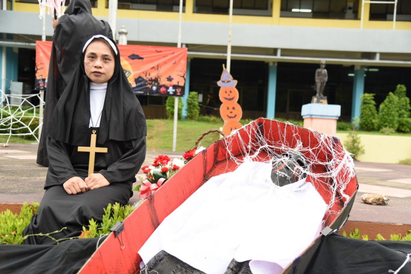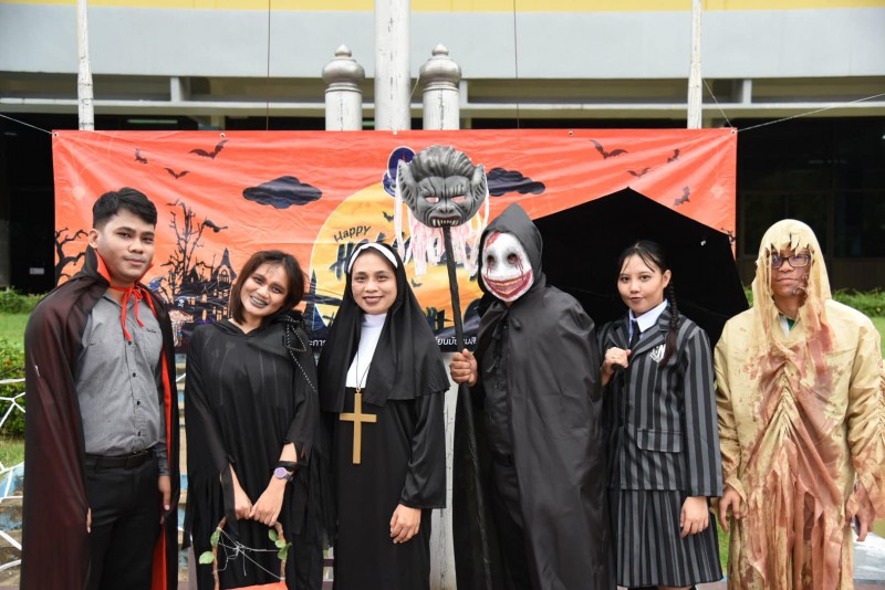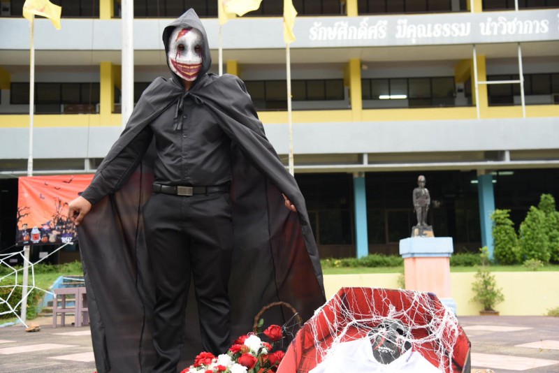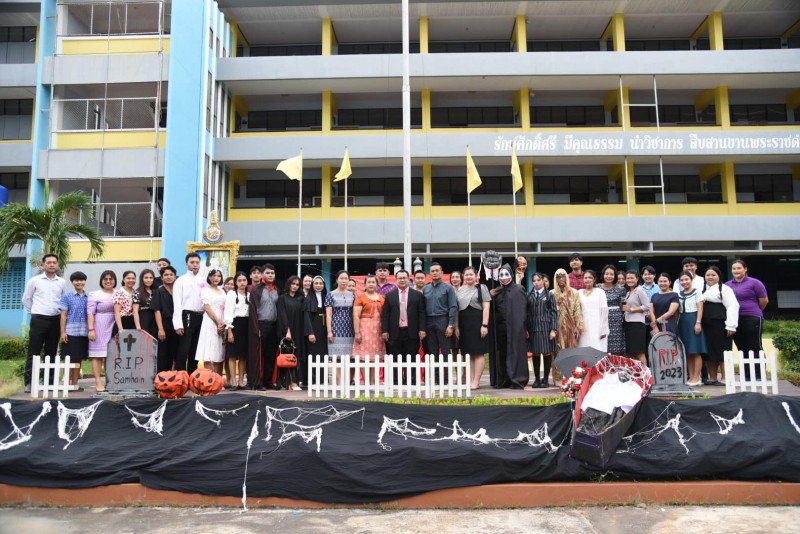 วันที่ 2 พฤศจิกายน 2566 กลุ่มสาระการเรียนรู้ภาษาต่างประเทศ โรงเรียนมัธยมสิริวัณวรี ๓ ฉะเชิงเทรา จัดกิจกรรมวันฮาโลวีน โดยให้ความรู้เกี่ยวกับความเป็นมาของเทศกาลฮาโลวีนกับนักเรียน มีการตอบคำถามชิงรางวัล มีผู้บริหาร คระครู ร่วมกิจกรรมในครั้งนี้ด้วย |