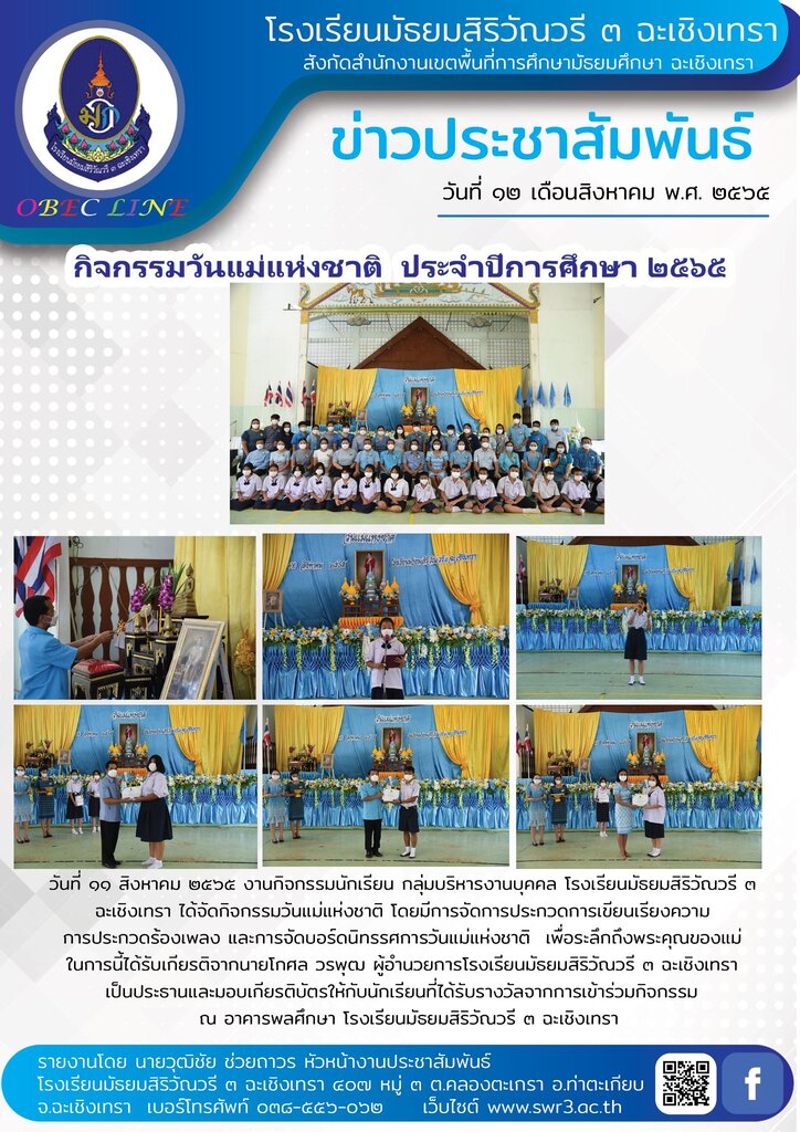 ฉะเชิงเทรา ได้จัดกิจกรรมวันแม่แห่งชาติ ประจำปีการศึกษา ๒๕๖๕