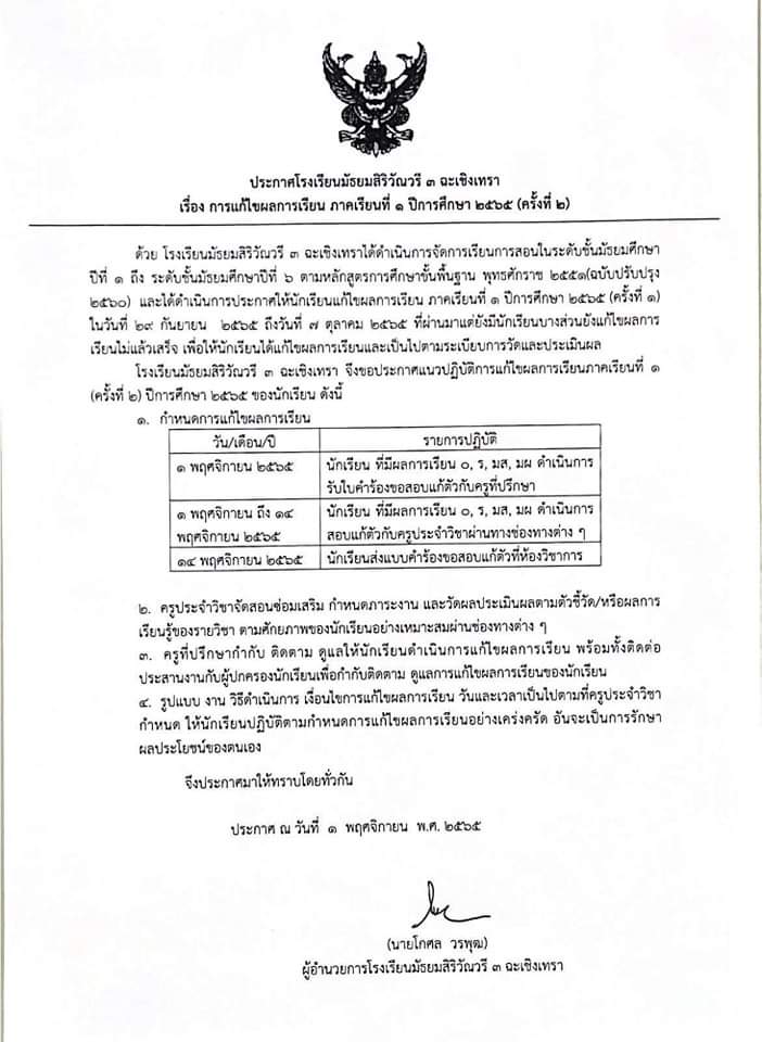 แก้ไขผลการเรียนภาคเรียนที่1/2565 ครั้งที่2