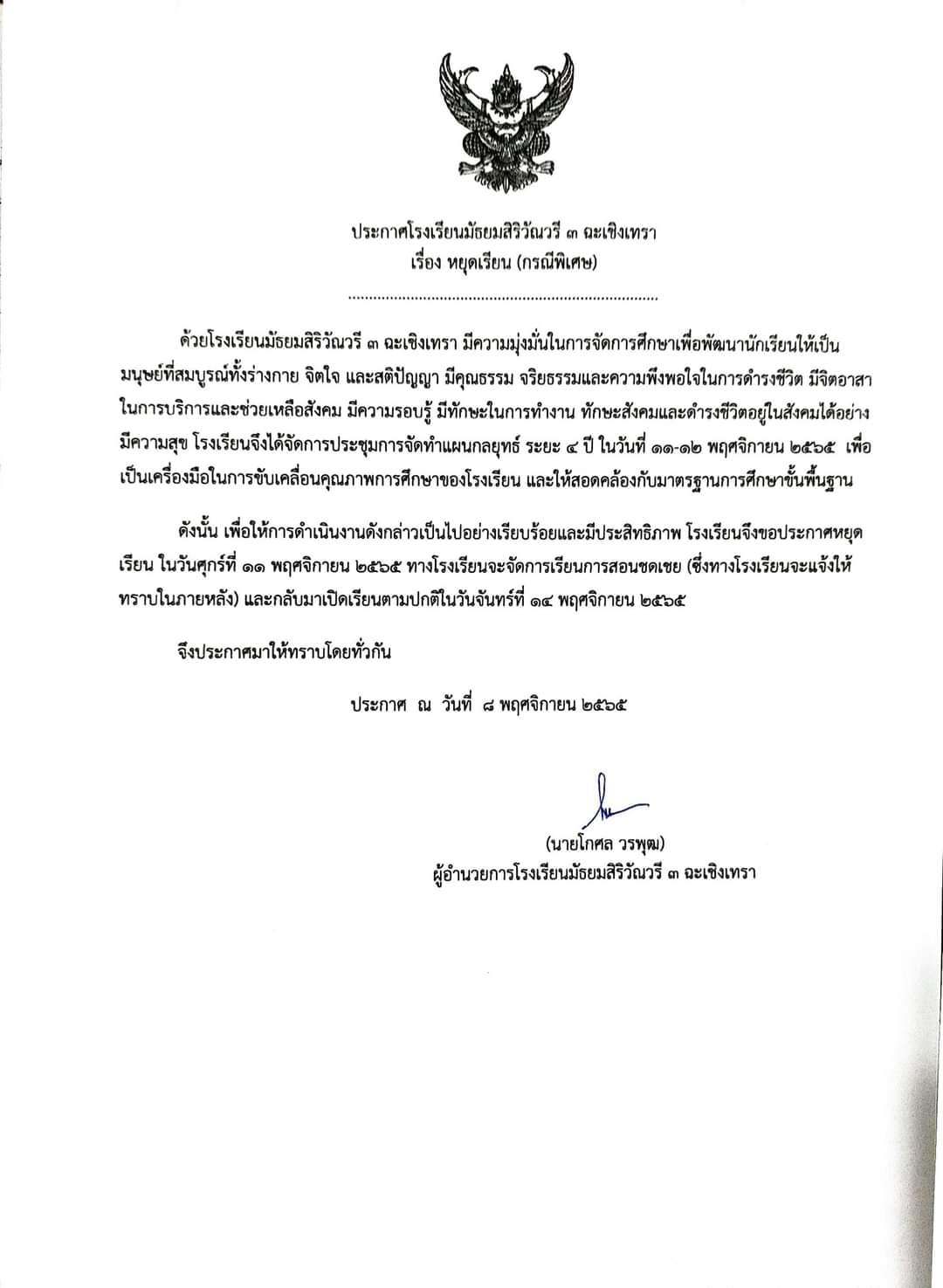ประกาศ (หยุดเรียนกรณีพิเศษ)