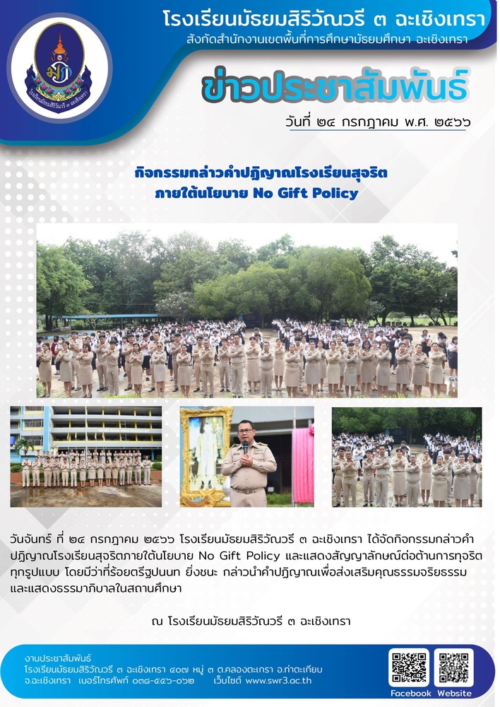 พิธีกล่าวคำปฏิญาณโรงเรียนสุจริต ภายใต้นโยบาย No Gift Policy