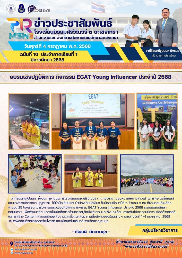 เข้ารับการอบรมเชิงปฏิบัติการ กิจกรรม EGAT Young Influencer ประจำปี 2568 ระดับมัธยมศึกษาตอนปลาย